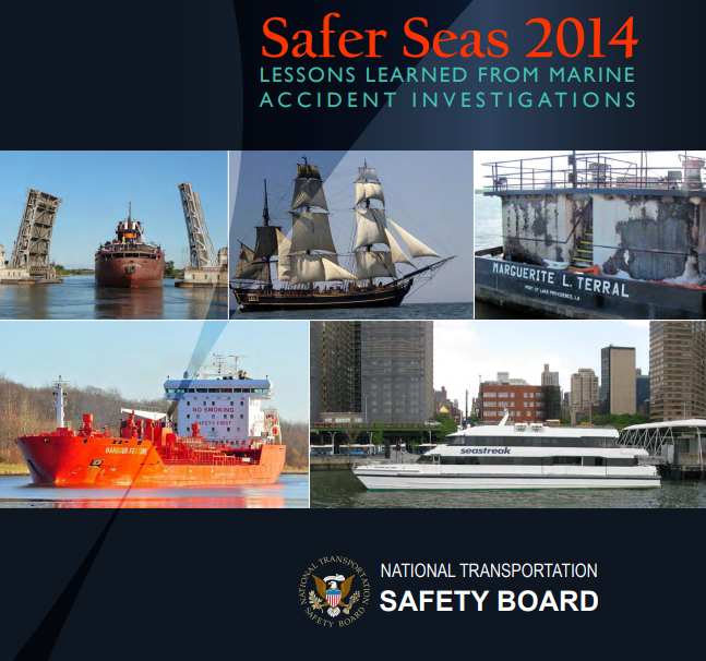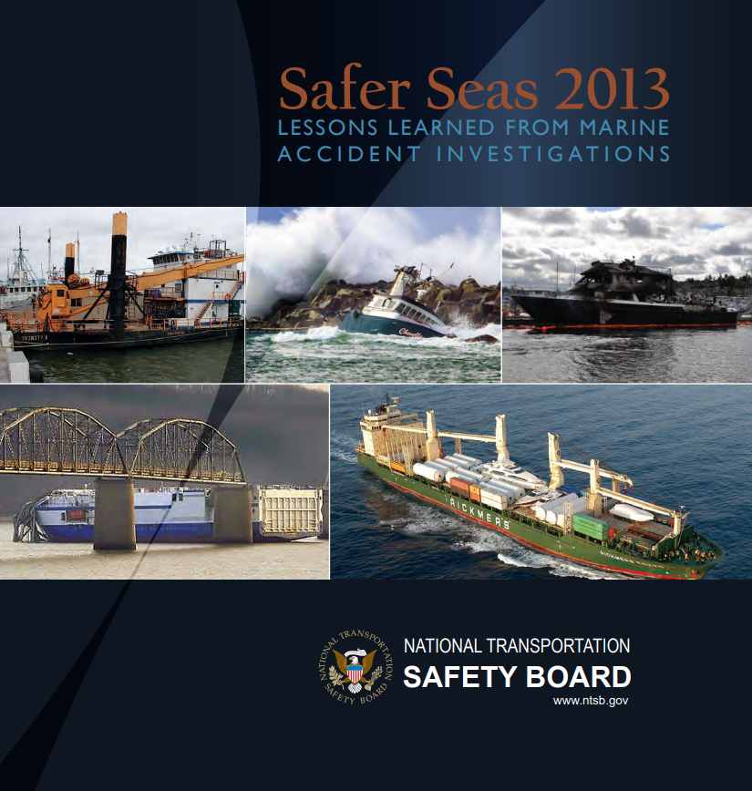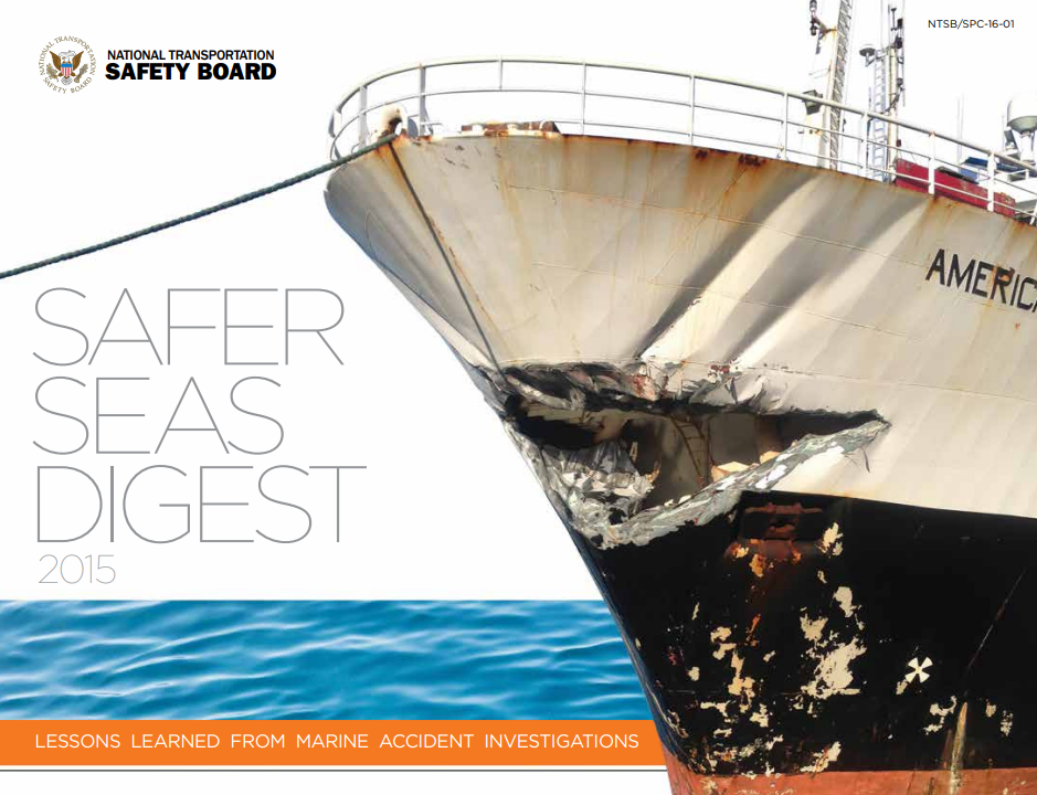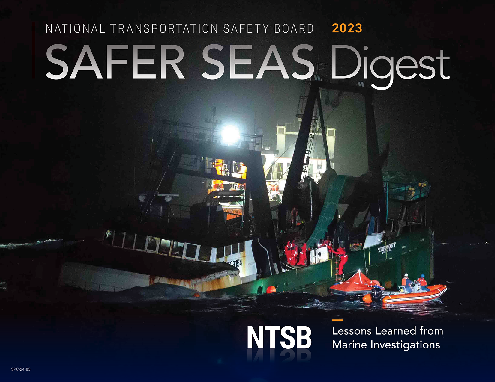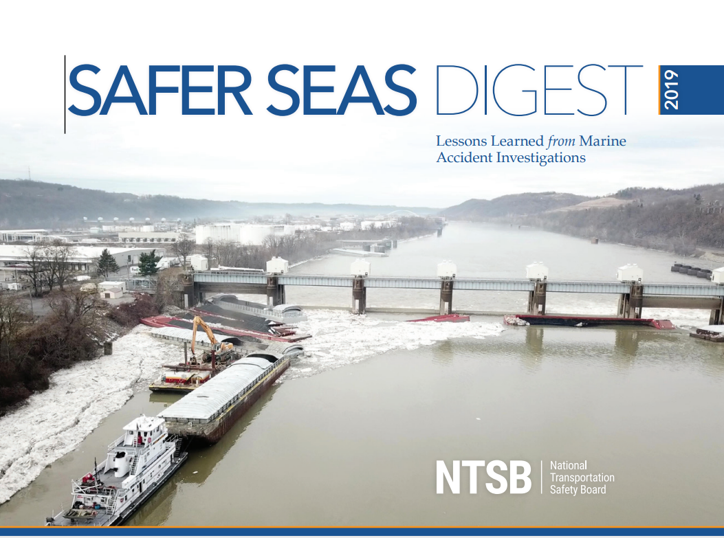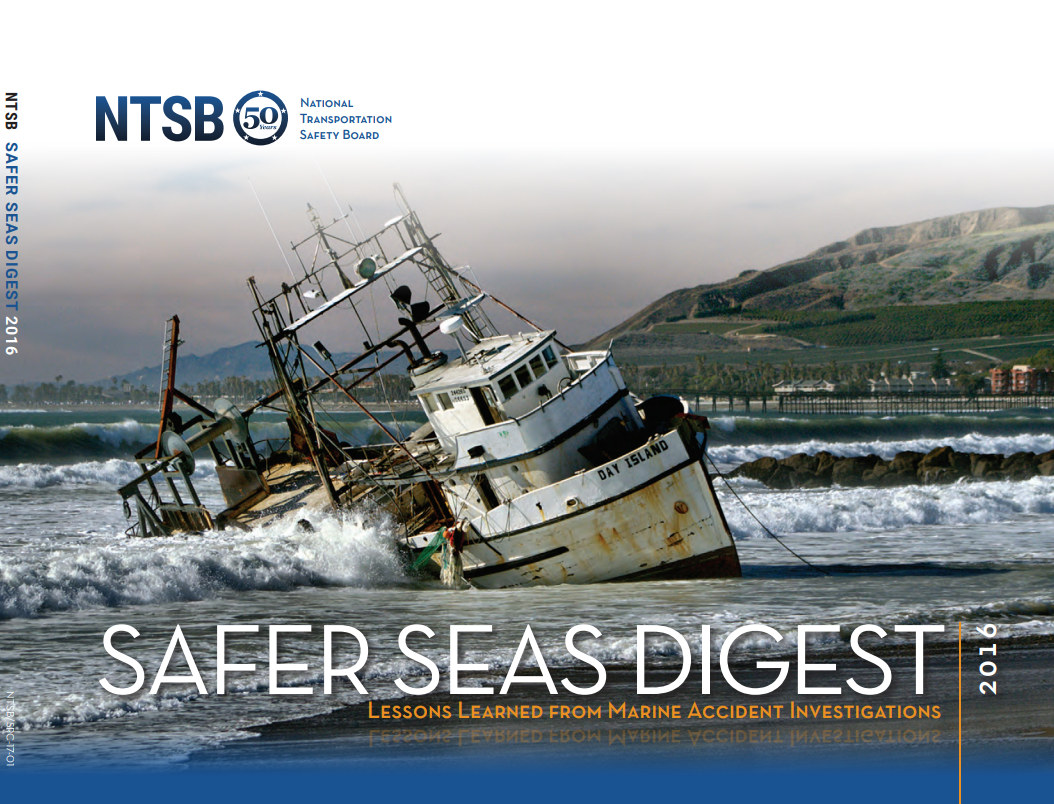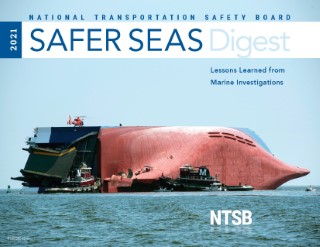 Safer Seas Digest, issued annually by the Office of Marine Safety, summarizes by casualty type the investigations completed in the previous year. Developed specifically for the marine community, the digest shares the circumstances of the casualties and lessons learned discovered during our investigations. Past lessons learned have discussed issues such as vessel stability, engine room fire containment, risk management, and crew communication—to name a few.