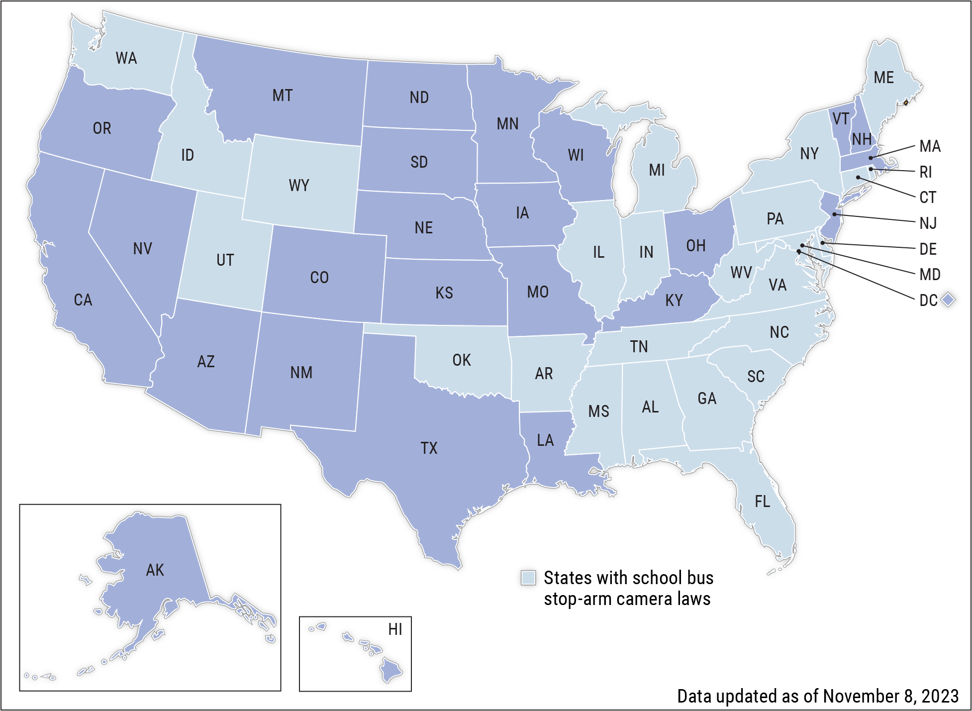 NTSB’s call for states to permit school bus stop-arm cameras is steadily taking hold across the country, with 25 states enacting laws to prevent illegal school bus passings that have reached an epidemic level, putting student safety at risk.