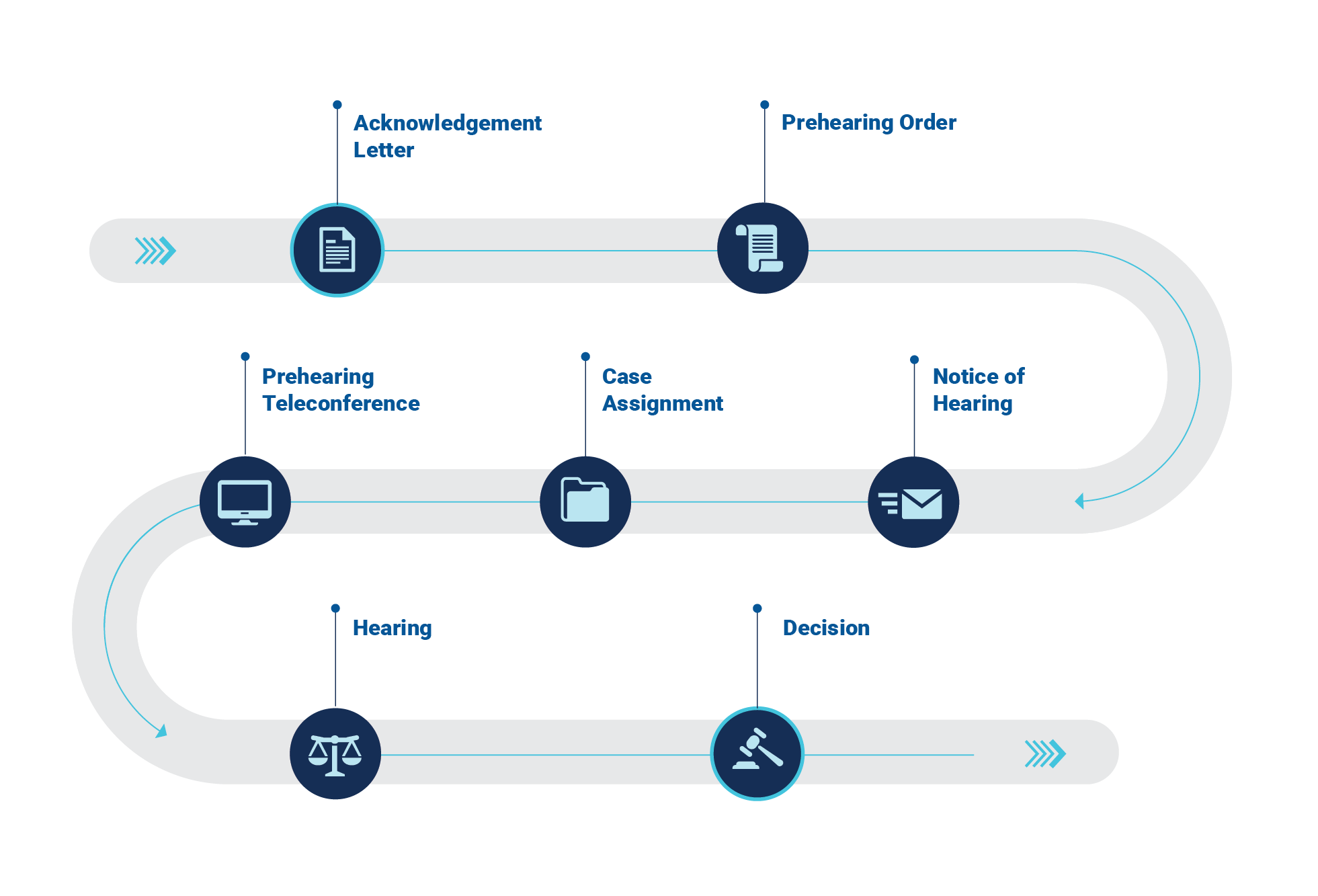 The assigned judge will notify you of the time and date for a Prehearing Teleconference. Points for discussion at the teleconference will be the steps leading up to the hearing.