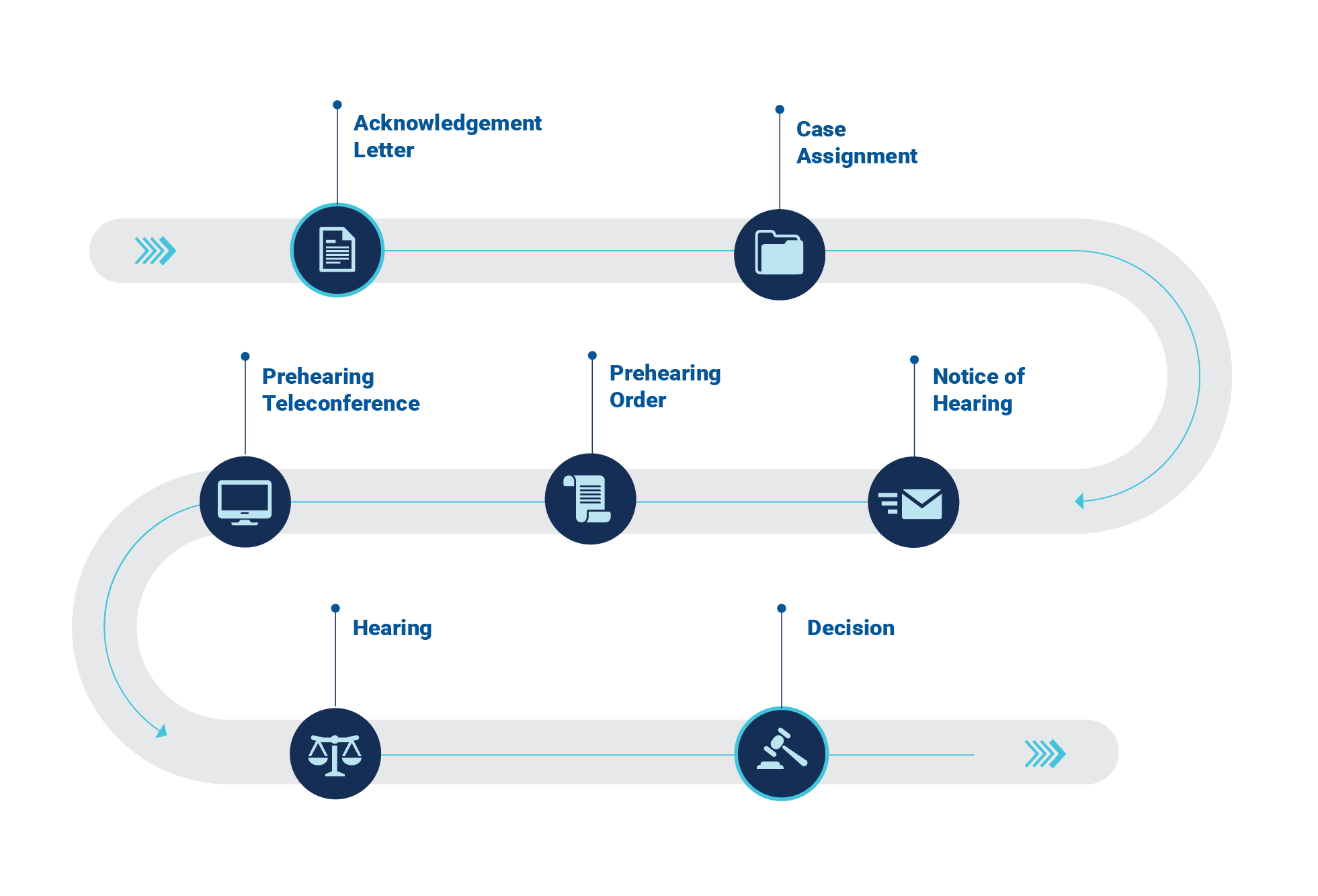 The assigned judge will notify you of the time and date for a Prehearing Teleconference. Points for discussion at the teleconference will be the steps leading up to the hearing.