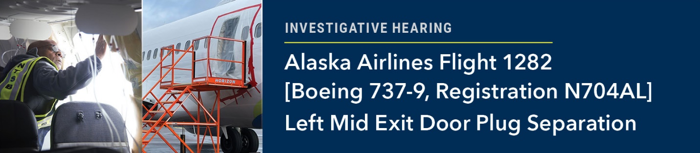 agenda and witness list for the two-day investigative hearing into the in-flight blowout of a left mid exit door plug on a Boeing 737-9 MAX.