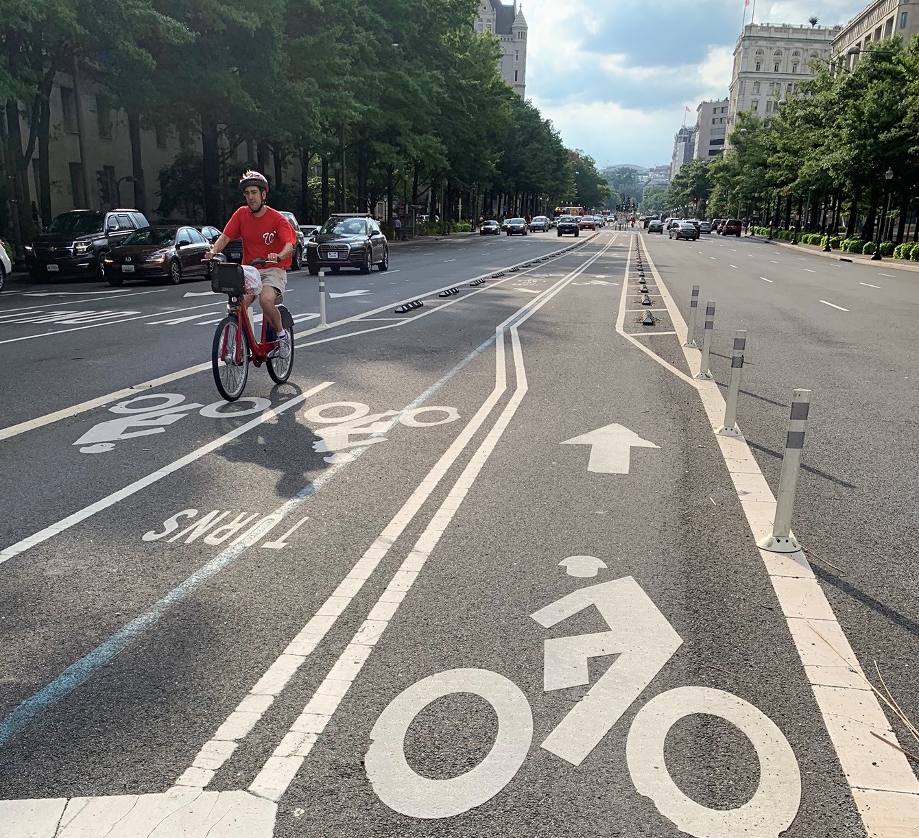 (In this photo, taken Aug. 16, 2019, in Washington, a two-way separated bike lane with vertical barrier is shown.