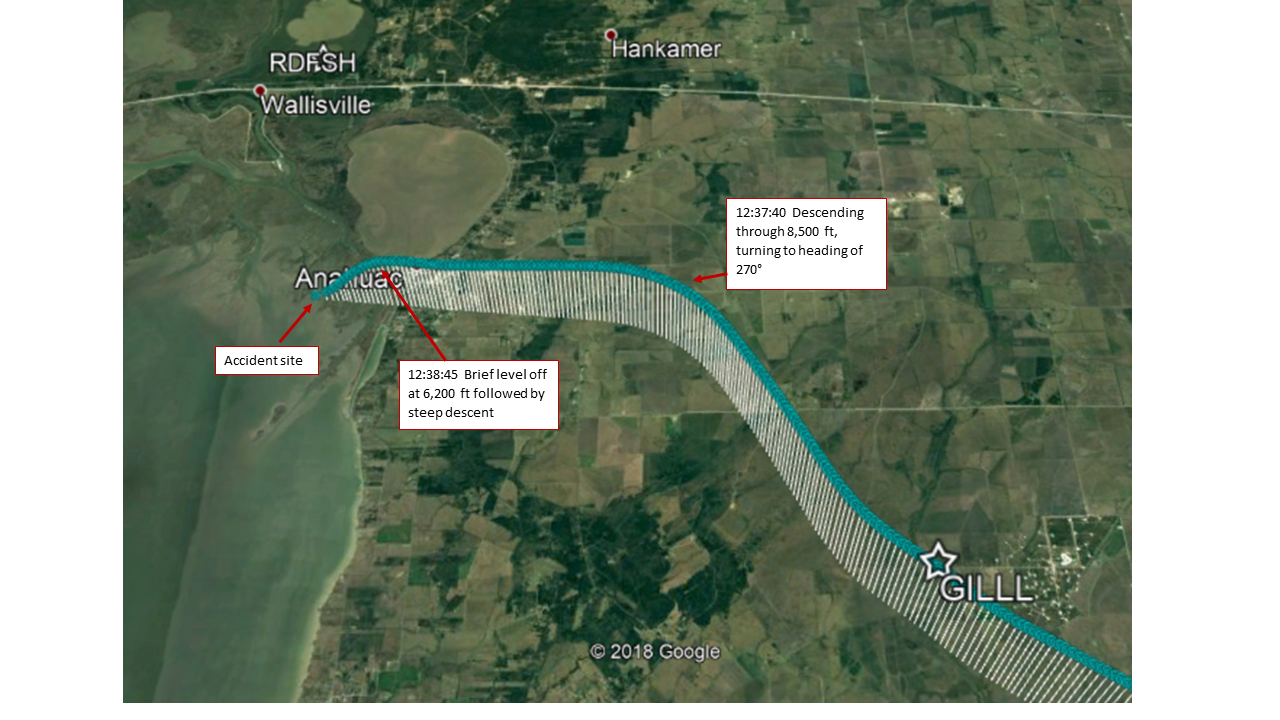 The accident occurred when a Boeing 767-300 Atlas Air cargo jet entered a rapid descent from 6,200 feet and impacted a marshy bay area about 40 miles from Houston’s George Bush Intercontinental Airport. The two pilots and one non-revenue jumpseat pilot were fatally injured. The airplane was destroyed. The airplane was carrying cargo from Miami to Houston for Amazon.com Inc., and the US Postal Service.