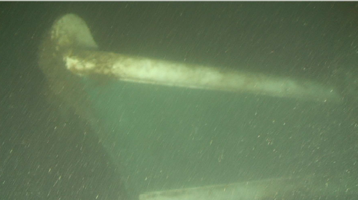 (Image of the Emmy Rose's port side bow captured by the ROV on Sept. 23, 2021. Photo courtesy of WHOI)