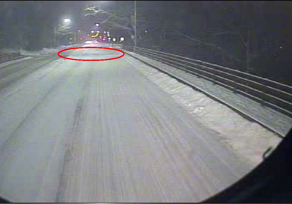 (Video frame from the forward-facing camera, showing the opening expansion joint.)