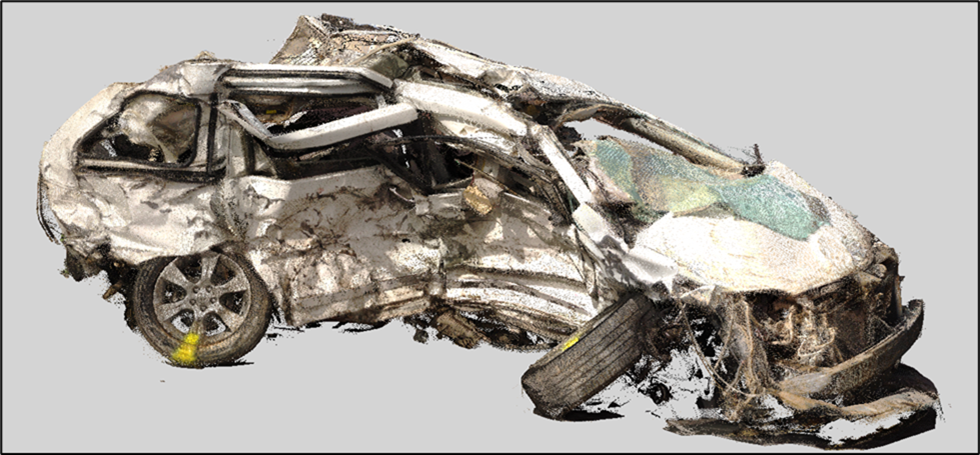 Caption: 3D laser scan showing damage to the minivan. The view is from the passenger side. (Source: NTSB).